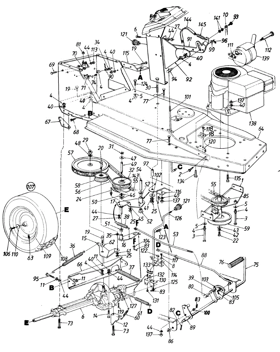 Hex screw for lawn mowers and tractors. Secures deck, wheels, or frame components. Replace if stripped, corroded, or missing for proper assembly.