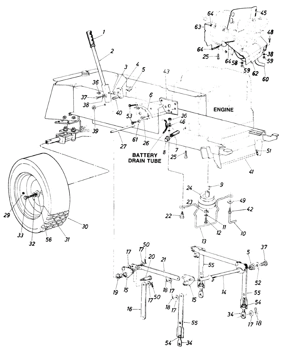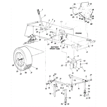 Flat washer for lawn tractors and riding mowers. Secures bolts and distributes load across assemblies. Replace if worn, corroded, or missing.