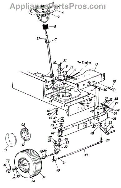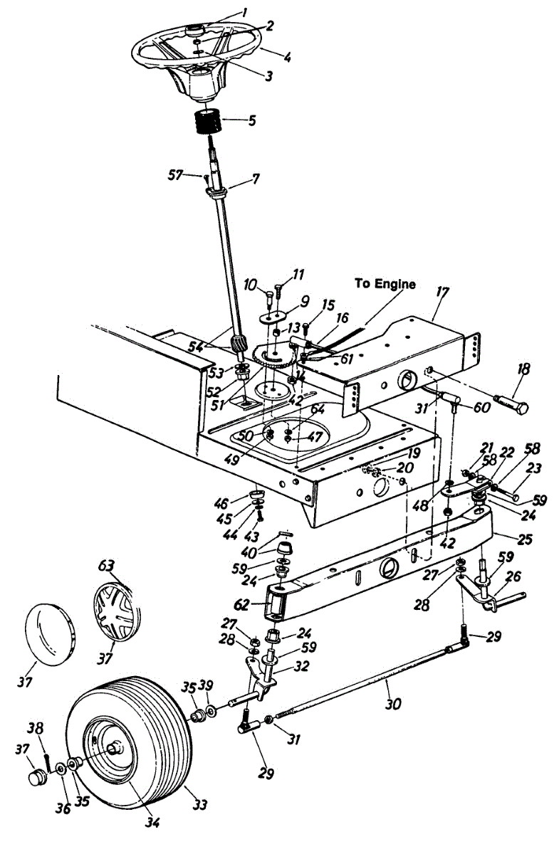 Tie rod connects steering components on lawn tractors and garden tractors. Replace if bent, cracked, or worn to restore proper steering linkage alignment.