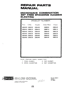 Frigidaire Microwave 56-1037-10-03 Repair Parts