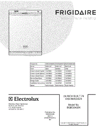 Frigidaire Dishwasher BGBD2432KW0 Repair Parts