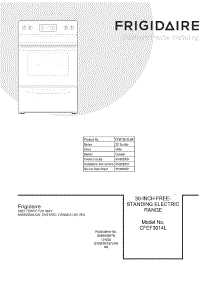Frigidaire Range CFEF3014LWF Repair Parts