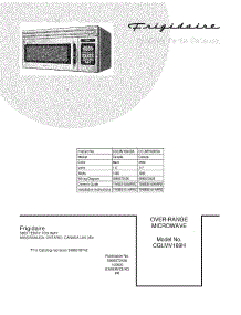 Parts for Frigidaire CGLMV169HBA Microwave Hood Combo