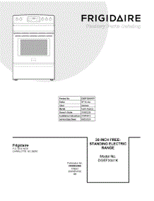 Parts for Frigidaire DGEF3041KFP Range/Oven, Electric, Freestanding, 30"