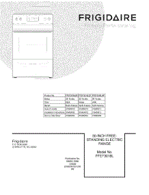 Frigidaire Range FFEF3018LWF / Repair Parts