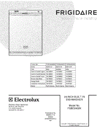 Frigidaire Dishwasher FGBD2432KF0 Repair Parts
