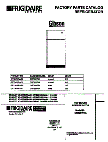 Frigidaire Refrigerator GRT26WRAD0 Repair Parts