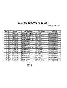 Parts for Kenmore / Sears 111.72213810 Countertop Microwave