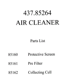 Parts for Kenmore / Sears 437.85264 Air Cleaner
