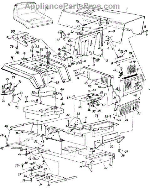 Replacement tap screw for lawn tractors and riding mowers. Secures covers, panels, and components. Needed when original screw is stripped, lost, or damaged.