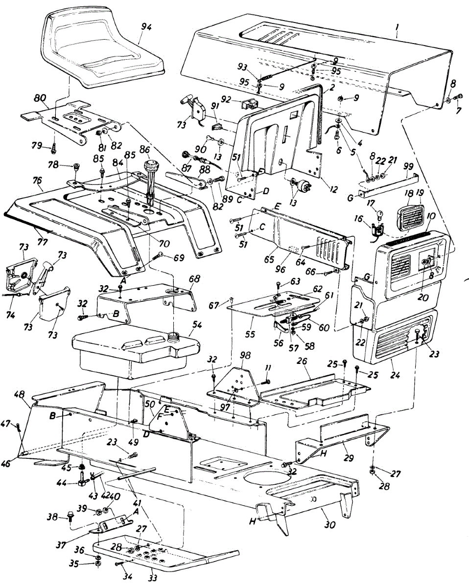 Self-tapping screw for lawn mowers and garden equipment. Secures metal, wood, and plastic parts. Replace if stripped, missing, or corroded.