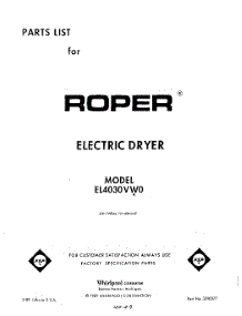 Roper Dryer EL4030VW0 Repair Parts