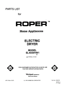 Roper Dryer EL4030VW1 Repair Parts