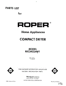 Roper Dryer REC3422AW1 Repair Parts