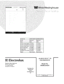 White Westinghouse Dishwasher WWBD2400HB1A Repair Parts