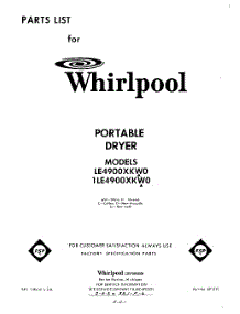 Whirlpool Dryer 1LE4900XKW0 Repair Parts