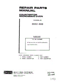 Whirlpool Microwave 2952020 / Repair Parts