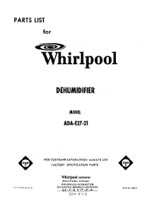 Whirlpool Dehumidifier ADAE2721 / Repair Parts