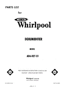 Whirlpool Dehumidifier ADAH2723 / Repair Parts