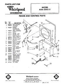 Whirlpool Dehumidifier AHA03021 / Repair Parts