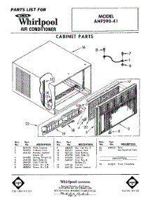 Whirlpool Air Conditioner AHF29041 / Repair Parts
