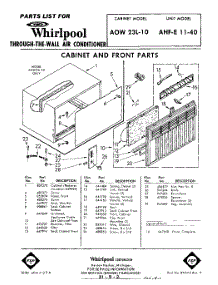 Whirlpool Air Conditioner AHFE1140 / Repair Parts