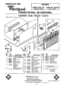 Whirlpool Air Conditioner AHFW1040 / Repair Parts
