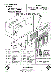Parts for Whirlpool AHFW14J0 / Air Conditioner