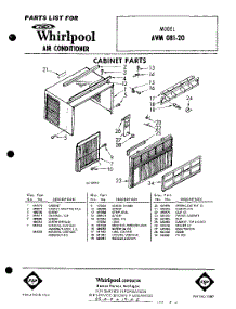 Whirlpool Air Conditioner AVM08120 / Repair Parts