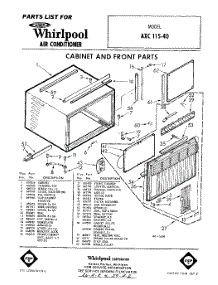 Whirlpool Air Conditioner AXC11540 / Repair Parts