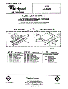 Whirlpool Air Conditioner AXL23030 / Repair Parts