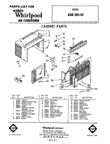 Whirlpool Air Conditioner AXM08020 / Repair Parts
