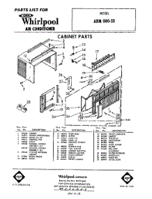 Whirlpool Air Conditioner AXM08023 / Repair Parts