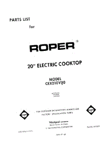 Whirlpool Cooktop CEX210VW0 / Repair Parts