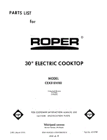 Whirlpool Cooktop CEX310VW0 / Repair Parts