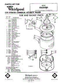 Whirlpool Washer CFA2500W0 / Repair Parts