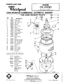 Whirlpool Washer CFA2500W3 / Repair Parts