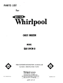 Whirlpool Freezer EAH09CW0 / Repair Parts