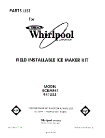 Whirlpool Ice Maker ECKMF61 Repair Parts