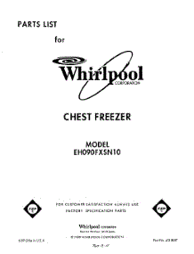 Whirlpool Freezer EH090FXSW10 / Repair Parts