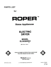 Whirlpool Dryer EL3030WL1 / Repair Parts