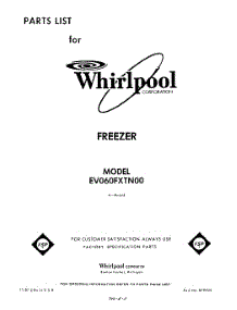 Whirlpool Freezer EV060FXTN00 Repair Parts