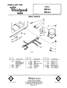 Whirlpool Freezer EVH16S0 / Repair Parts