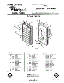 Whirlpool Freezer EVV15MWR1 / Repair Parts