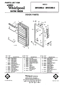 Whirlpool Freezer EWV21SWR0 / Repair Parts