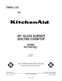 Kitchenaid Cooktop KECT305VWH1 Repair Parts