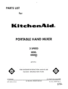 Parts for Kitchenaid KHM3WH Mixer- Hand