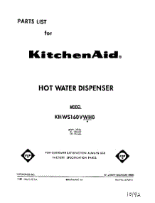 Kitchenaid Model KHWS160VWH0 parts in stock and ready to ship!