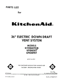 Kitchenaid Hood KIVD860TOB Repair Parts
