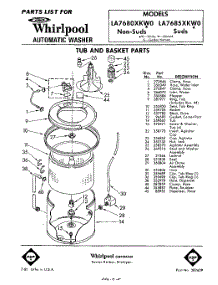 Whirlpool Washer LA7685XKW0 / Repair Parts